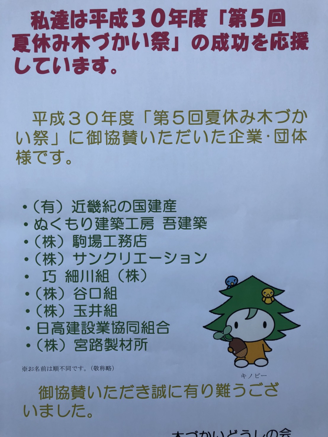 昨日、第五回夏休み木づかい祭り2018に参加しました。厳しい暑さの中、約300人の方々にご来場いただきました。ありがとうございました。
